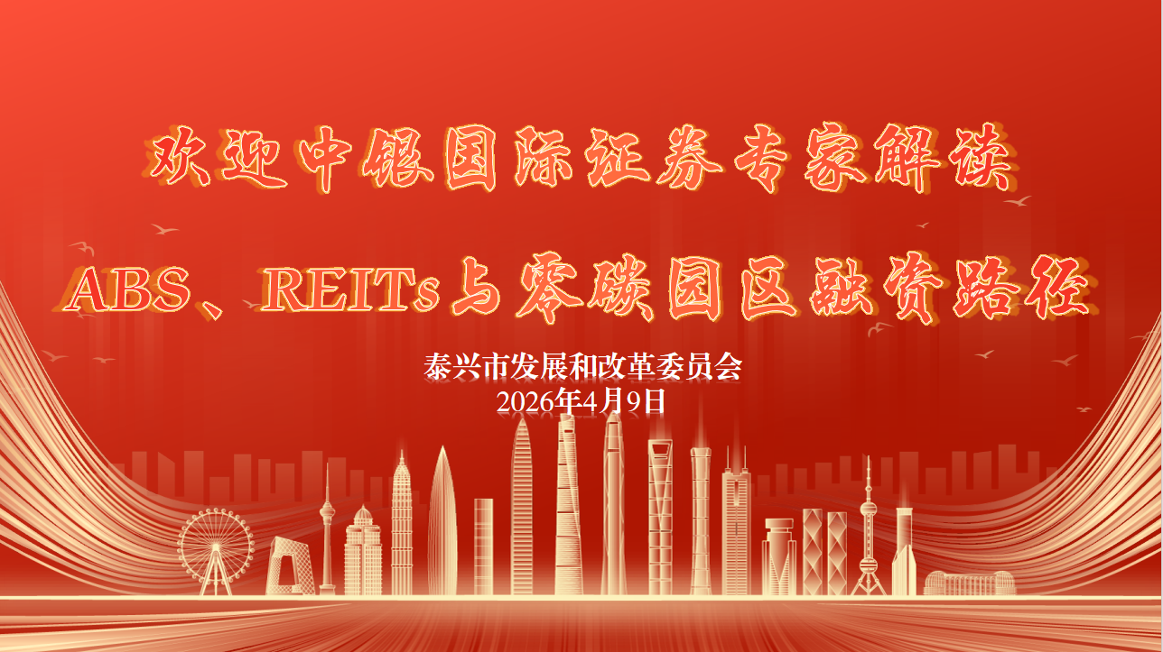 为推动各方精准把握政策机遇,泰兴市发展和改革委于4月9日邀请中银国际公司专家,围绕“零碳园区绿色融资与资产证券化”主题开展专题交流,系统解读ABS、REITs等金融工具及零碳园区、零碳工厂的金融服务模式。市财政局、中国银行泰兴支行、泰兴经济开发区、黄桥经济开发区、城投集团、交产集团、港口集团、中建泰兴水务有限公司参加了会议。